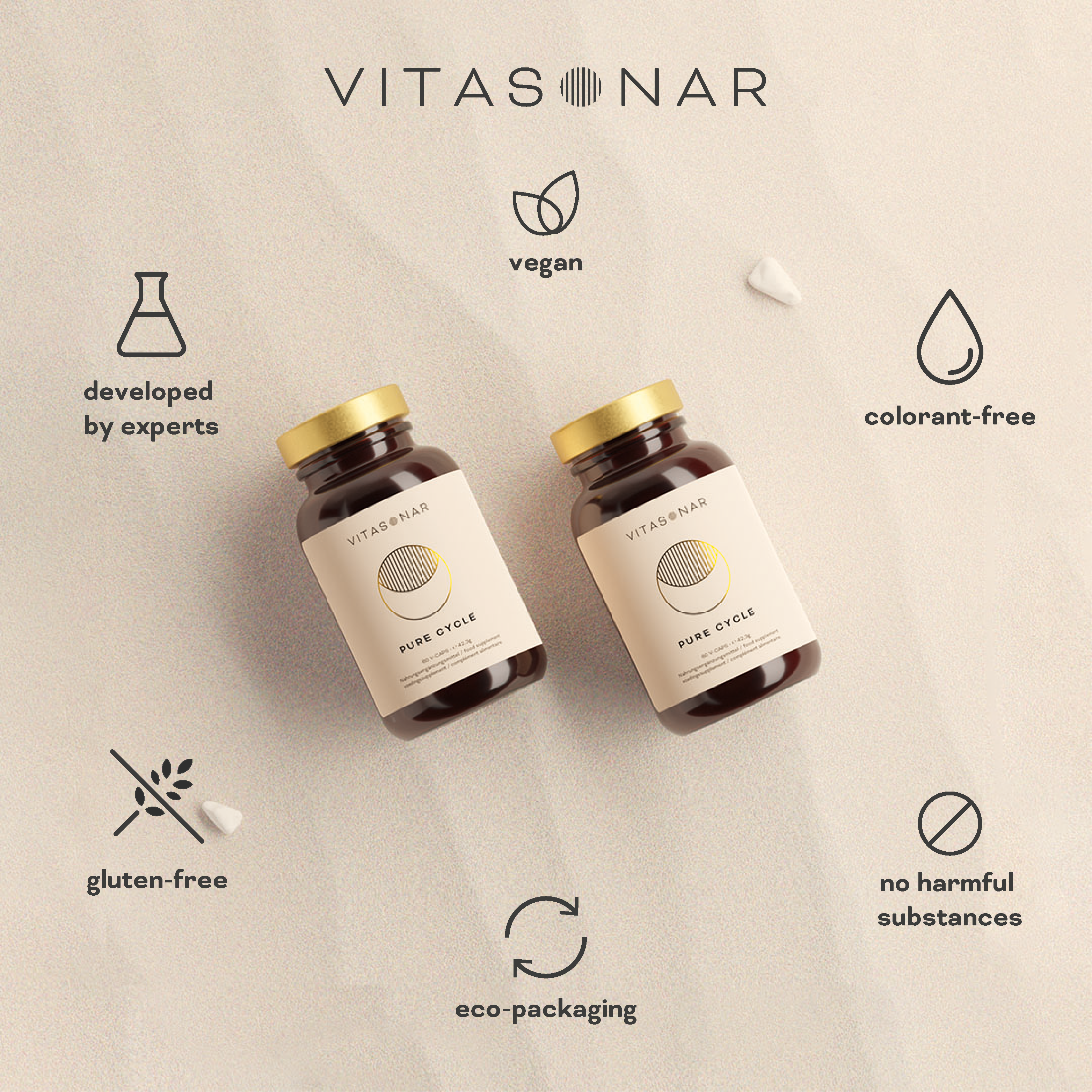 Een unieke combinatie van 9 hoogwaardige ingrediënten in Pure Cycle zorgt voor een hormonale balans, het verminderen (pre)menstruatie klachten, het bevorderen van de vruchtbaarheid en het verminderen van een opgeblazen gevoel.