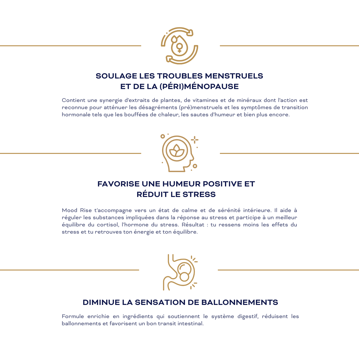 Aide à soulager les bouffées de chaleur, l’irritabilité et les variations d’humeur.