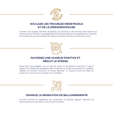 Le gattilier, le fenouil et le houblon soutiennent un cycle régulier et atténuent l’inconfort.