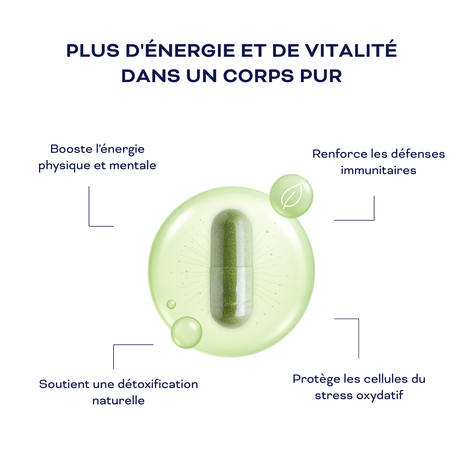La chlorella et le matcha favorisent la purification du foie et des reins, et renforcent vos défenses.
