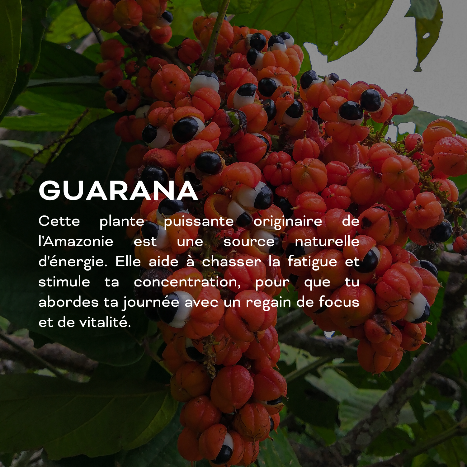 Le guarana et le matcha offrent un regain d’énergie naturel et soutiennent la vigilance mentale.
